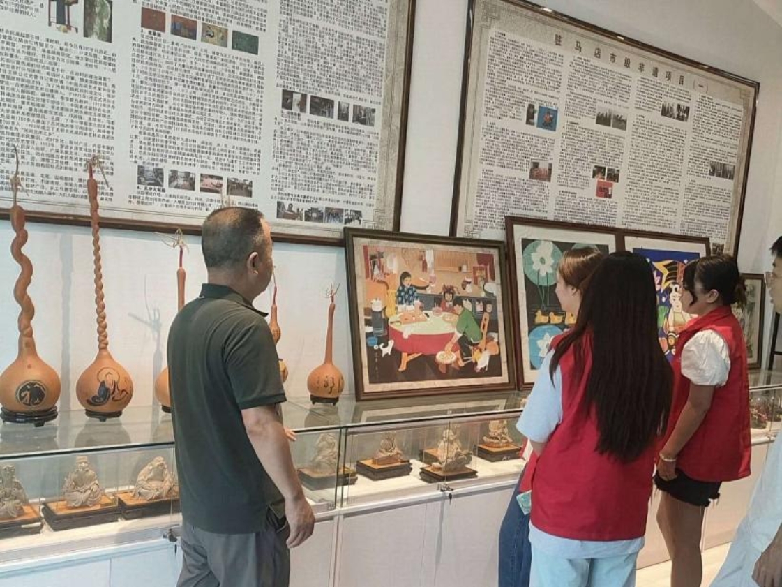 实践尾声,队员们参观汝南县非遗文化展览馆,观赏罗卷戏的木偶、顿岗油馍的模具、上蔡重阳绛囊的彩线等作品,发现麦草画已与梁祝剪纸联名推出《化蝶》系列,与罗卷戏角色结合制作“戏韵麦秆灯”。县里每年投入大量专项经费,用于非遗进校园、直播电商培训及短视频推广,2024年“麦草画+”系列产品线上销售额同比增长120%。在驻马店市文广旅局和省文旅厅的共同努力下,这项以天然麦秆为创作载体的艺术形式,既传承了千年农耕文明精髓,又顺应了当代消费者对环保美学的追求,为创业者搭建了低门槛、高附加值的财富通路。