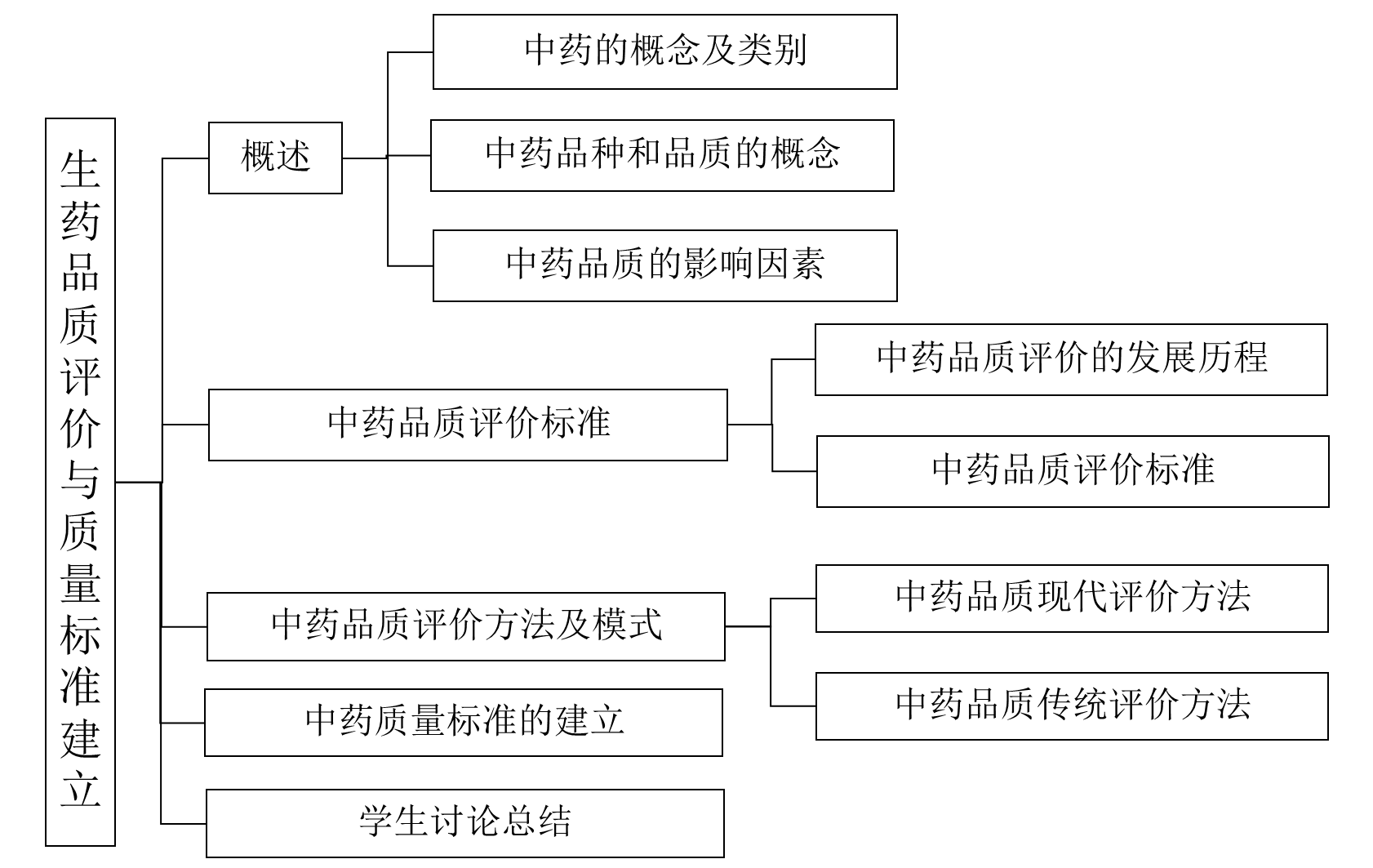 结合行业需求,课程建设重点在 “中药品质评价”。本课程建设结合当前中药质量研究的前沿,重点放在中药品质方面的评价。中药品质的全面评价涉及中药品控的每一个环节,如栽培、采收、产地加工、储存、炮制、提取分离、制剂、用法等,如何更好的构建一门全面评价中药品质的课程体系将是课程建设研究的重点内容。本课程设计了五个教学模块,从中药、中药品种、中药品质等基本概念入手,向学生讲述影响中药品质的因素,让学生掌握中药品质评价的标准及方法。具体主要是学科概述、中药品质评价标准、中药品质评价方法及模式、中药材质量标准建立、学生汇报总结五个教学模块。
