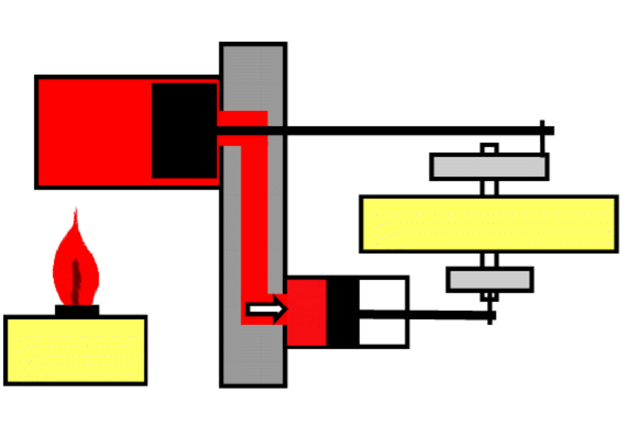 图10. 线上讲解斯特林热机的机理图(左)与线下课堂教学现场照片(左).