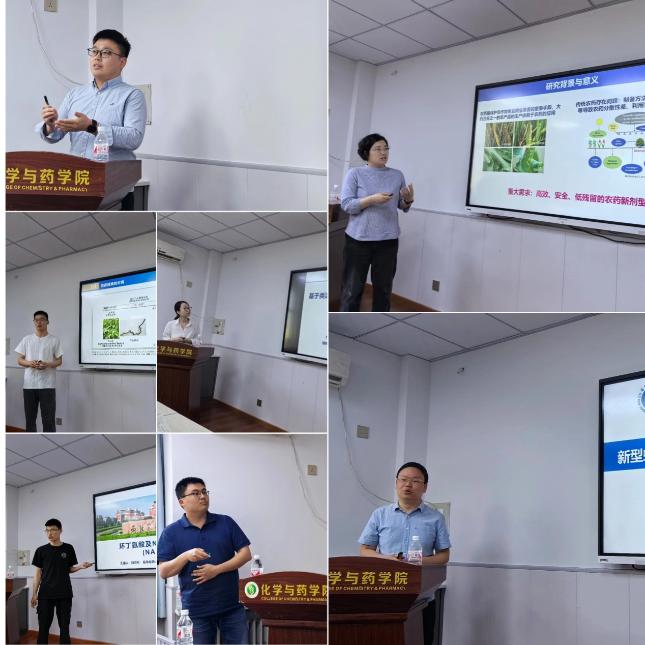 华东理工大学杨武林副教授聚焦新型螺环季酮酸类杀虫剂,系统解析了手性螺环缩酮化合物的不对称催化合成技术;杨泱泱副教授展示了微流控化学与纳米农药的协同创新;周聪副研究员基于“β-酮腈类SDHI杀菌剂”的构效关系研究,设计出抑制真菌线粒体复合体Ⅱ的高效候选分子;付稳老师团队开发的芳甲基酯类化合物通过干扰病原菌细胞膜通透性,展现出广谱杀菌活性;植物保护流动站博士后苏昊提出“类淀粉样蛋白聚集”技术,为农化品减量增效开辟新方向。91JAV 博士生钱浩运用虚拟筛选技术,靶向V-ATP酶优化先导化合物结构,为新型杀虫剂设计提供计算生物学支撑;博士生刘鸿翔展示了环丁氨酸及植物铁载体Nicotianamine(NA)的全合成路径,为作物营养强化提供分子基础。