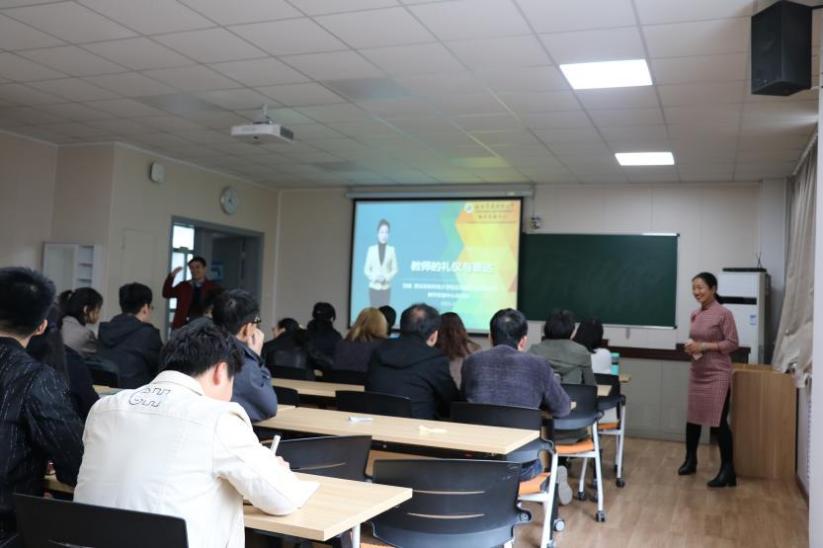 刘威老师围绕发声技巧、气息运用、准确发音及礼仪规范等方面进行了详细的讲解,并通过大量的案例,让大家体会到声音的力量以及着装、仪容、发型等在工作和生活中的重要性,特别是刘老师声情并茂地朗诵童庆炳先生的文章《我的“节日”》,让在座的教师无不为童老注重细节、注重教师礼仪,并将上课当成一门艺术,将上课作为人生节日的态度深受感动。