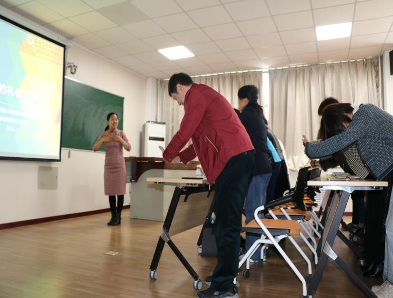培训会现场气氛热烈,互动积极,老师们纷纷表示受益匪浅,充分认识到了良好的口语表达与规范的礼仪不仅有利于提高教师的综合素质,建立和谐融洽的师生关系,也有利于提高课堂教学效果,落实立德树人成效。