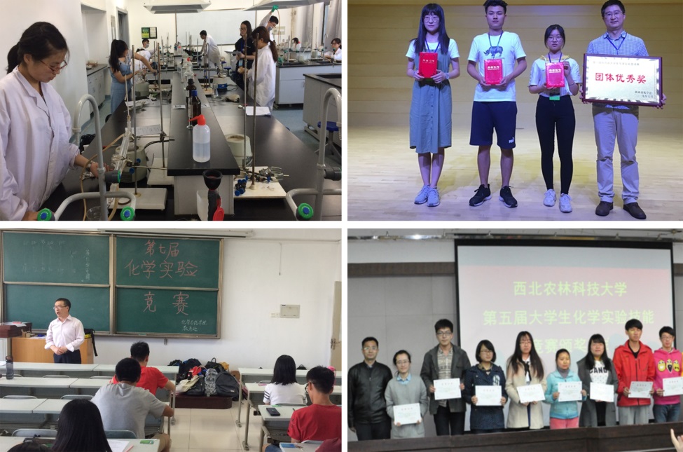 坚持组织对化学有兴趣的学生利用业余时间或假期在实验室进行训练,在研究生带领下通过一些涉及有机化学、分析化学等多学科的综合实验提升学生对化学不同学科间的融合能力。另外一项在坚持做的事情是举办和指导学生参加校及省级的化学实验技能竞赛和创新实验设计竞赛,通过竞赛及竞赛前的培训等在增强学生实验技能同时,也培养了学生的实验设计能力(图6)。在举办的竞赛中,把对一些先进仪器的使用(比如气相、高效液相色谱、红外等)等作为竞赛内容,把科研中的成熟实验变成综合设计实验引入竞赛项目,培养学生综合运用知识和独立思考的能力。在最近的一次省级竞赛中,我校3名队员全部获得一等奖。
