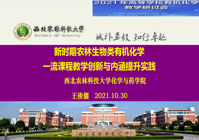 这是本年度我校有机化学教学创新相关成果第3次在全国性研讨会上交流,也是首次在全国高等学校有机化学专业研讨会上与教学名家和同行进行成果分享。与会代表对我校开展的教学改革实践赞誉有加,认为理念超前,创新成果凸显西农特色。此次全国性研讨交流和学习,为我校今后的化学教学改革,开展创新与质量内涵提升提供了新的驱动力。