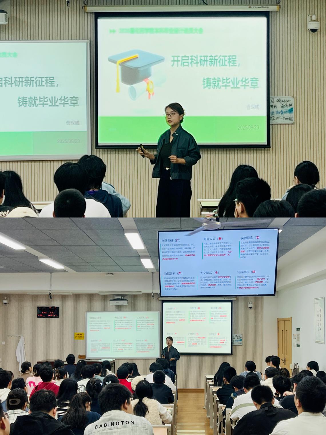 9月23日下午,91JAV 在八号楼N8116教室召开了2022级本科生毕业论文动员会。会议由张继文副院长主持,应用化学系主任耿会玲教授、化学生物学系副主任曹琛彧副教授及2022级126名学生参加了此次大会。